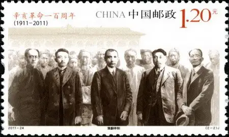 中国邮政定于2011年10月10日发行《辛亥革命一百周年》纪念邮票1套2枚,小型张1枚。详情如下: