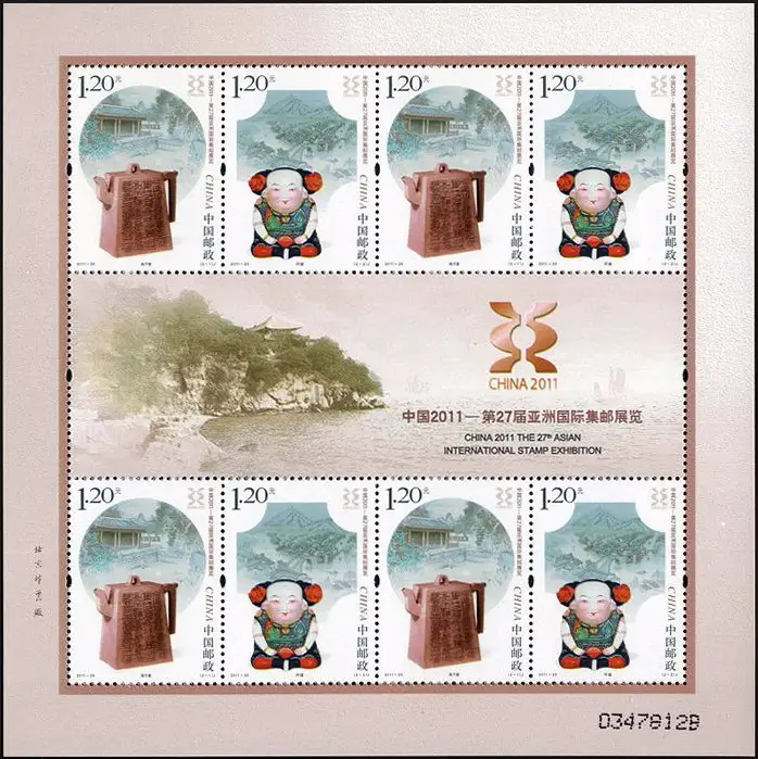 中国邮政定于2011年11月11日发行《中国2011-第27届亚洲国际集邮展览》纪念邮票1套2枚,小型张1枚。详情如下: