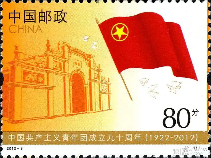 中国邮政2012年5月4日发行《中国共产主义青年团成立九十周年》纪念邮票1套2枚。