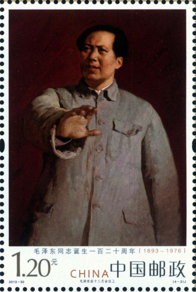 中国邮政定于2013年11月16日发行《毛泽东同志诞生一百二十周年》纪念邮票1套4枚。详情如下: