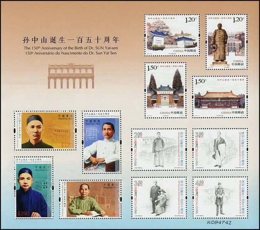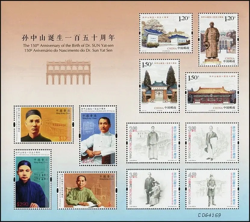 中国邮政定于2016年11月12日发行《孙中山诞生一百五十周年》纪念邮票1套4枚。详情如下: