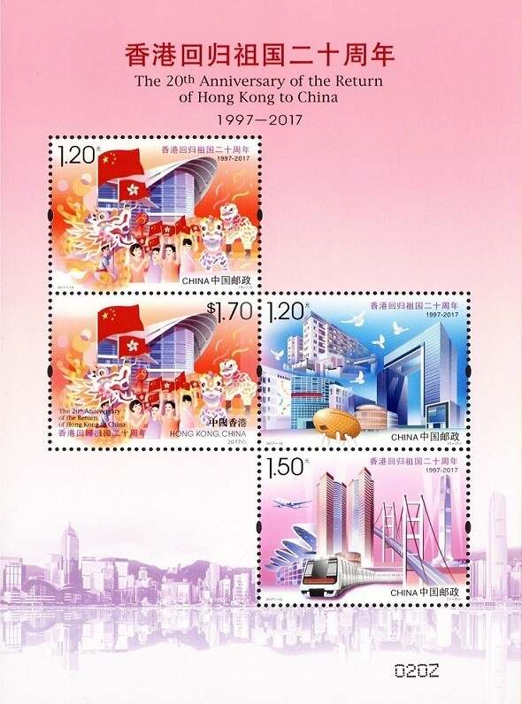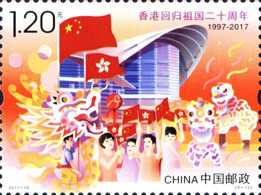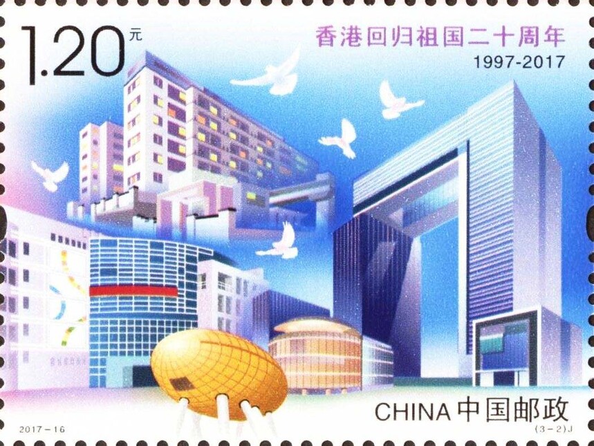 中国邮政定于2017年7月1日发行《香港回归祖国二十周年》纪念邮票1套3枚。详情如下: