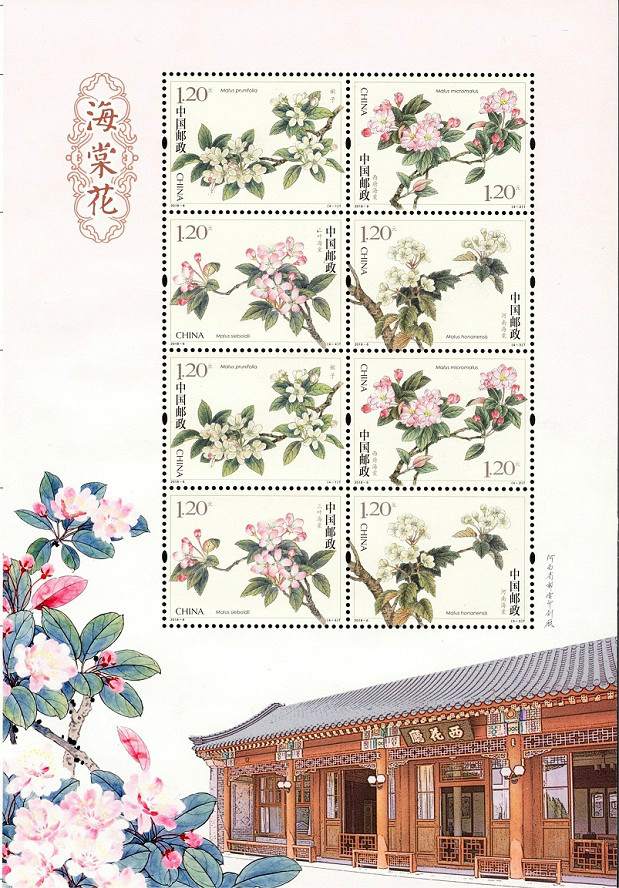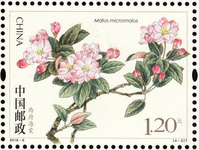 中国邮政定于2018年3月25日发行《海棠花》特种邮票1套4枚。详情如下: