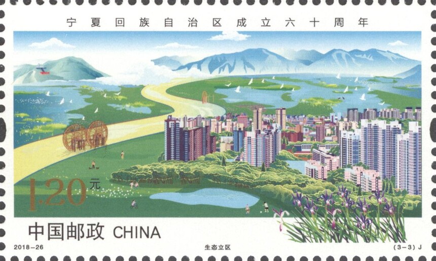 中国邮政定于2018年9月19日发行《宁夏回族自治区成立六十周年》纪念邮票1套3枚。详情如下: