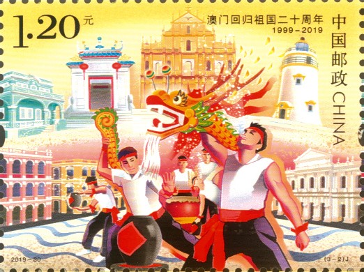中国邮政定于2019年12月20日发行《澳门回归祖国二十周年》纪念邮票1套3枚。详情如下: