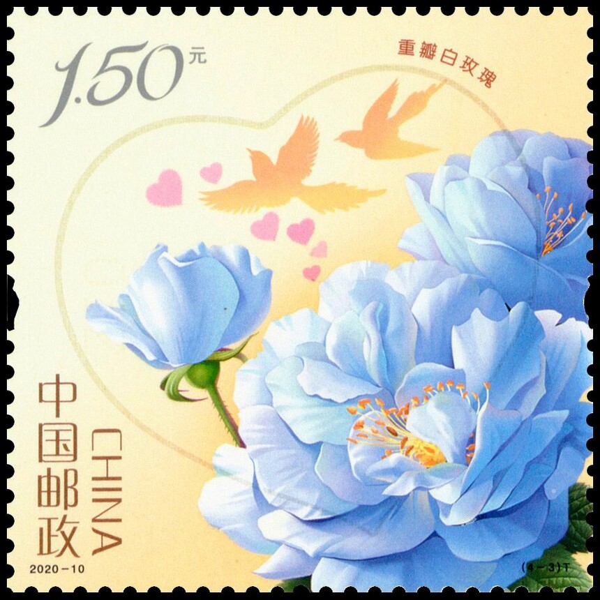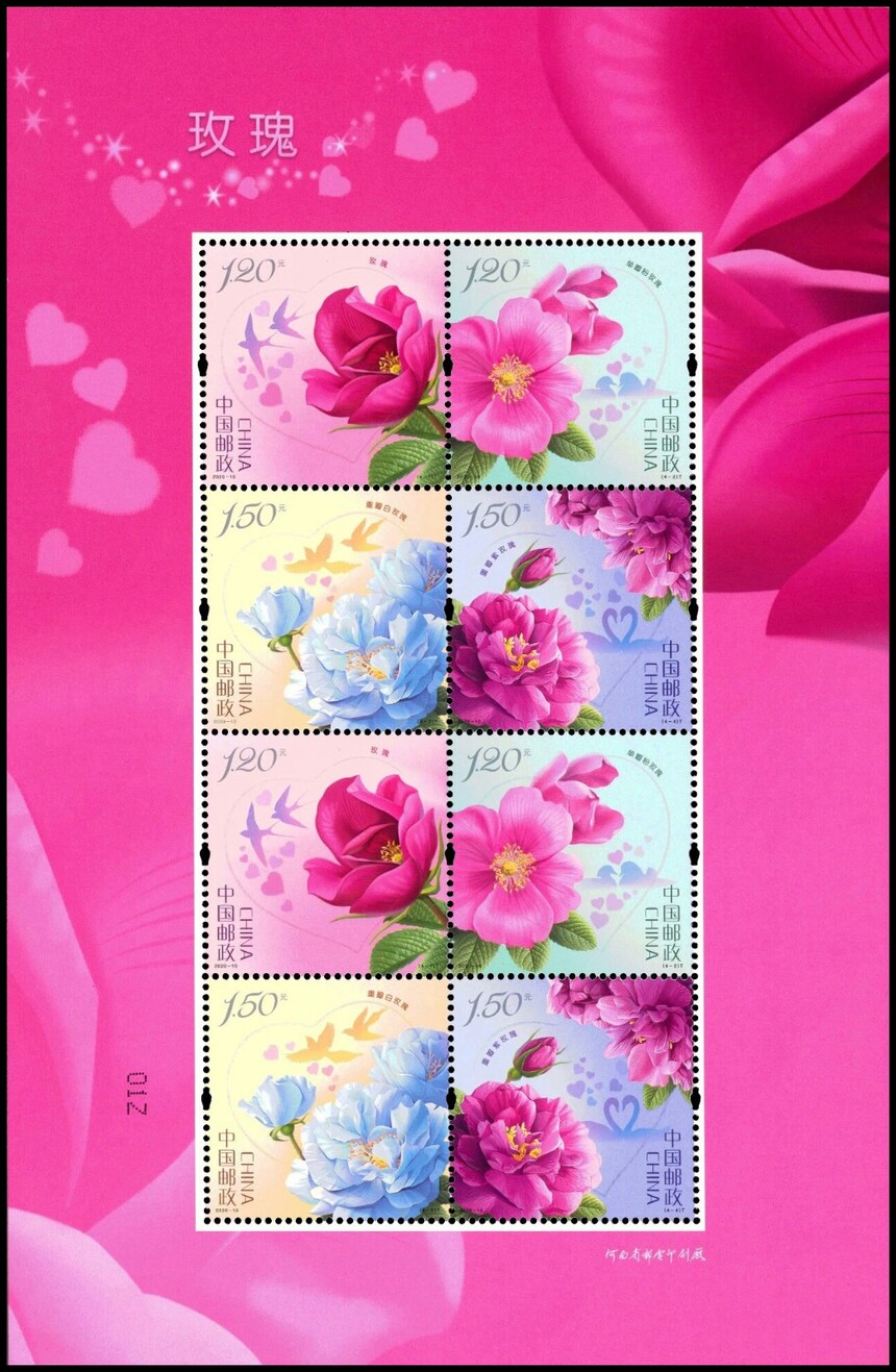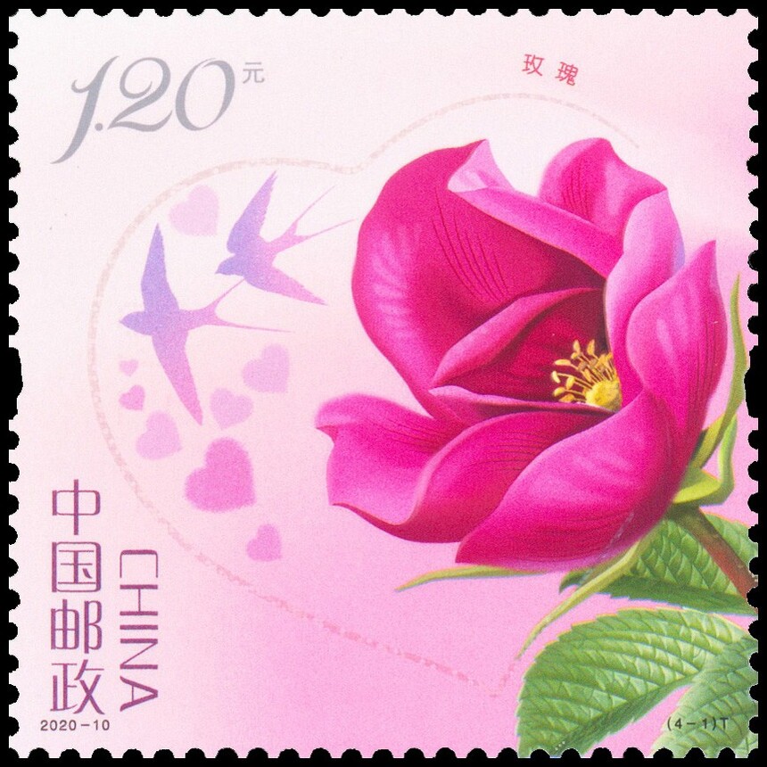 中国邮政定于2020年5月20日发行《玫瑰》特种邮票1套4枚。详情如下: