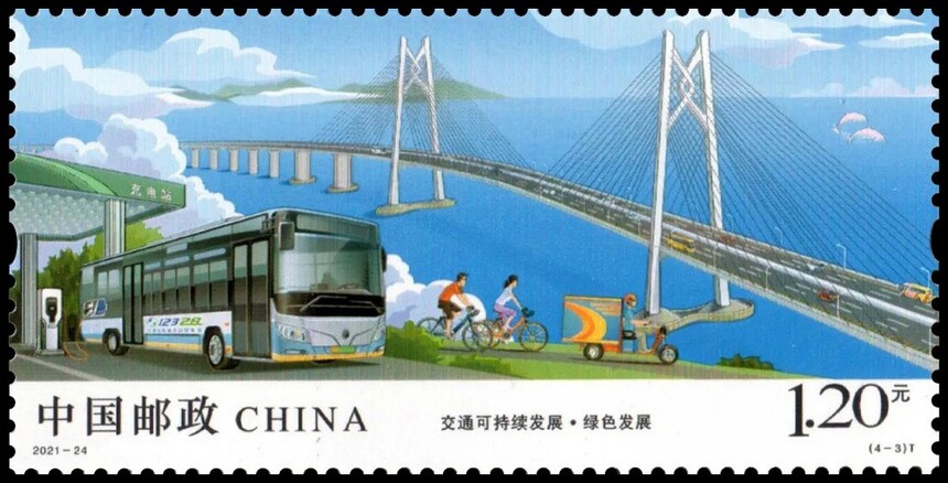 中国邮政定于2021年10月15日发行《交通可持续发展》特种邮票1套4枚。详情如下: