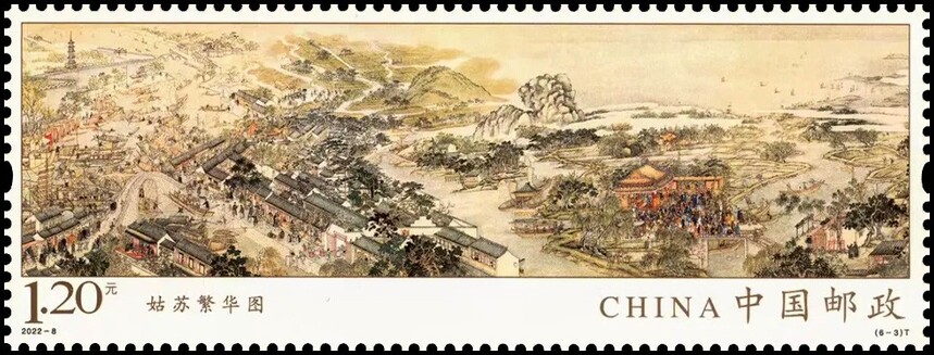 中国邮政定于2022年5月18日发行《姑苏繁华图》特种邮票1套6枚。详情如下: