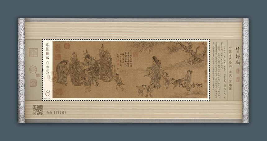 中国邮政定于2023年6月18日发行《货郎图》特种邮票1套2枚,小型张1枚。详情如下: