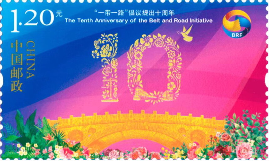 中国邮政定于2023年9月7日发行《“一带一路”倡议提出十周年》纪念邮票1套1枚。详情如下: