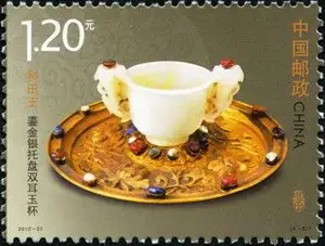 (4-3)T 鎏金银托盘双耳玉杯 1.20元