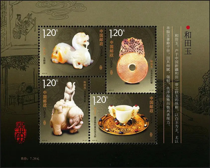 2012-21《和田玉》特种邮票1套4枚、小全张1枚