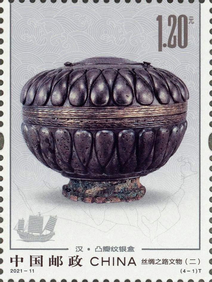 中国邮政定于2021年6月12日发行《丝绸之路文物(二)》特种邮票1套4枚。详情如下: