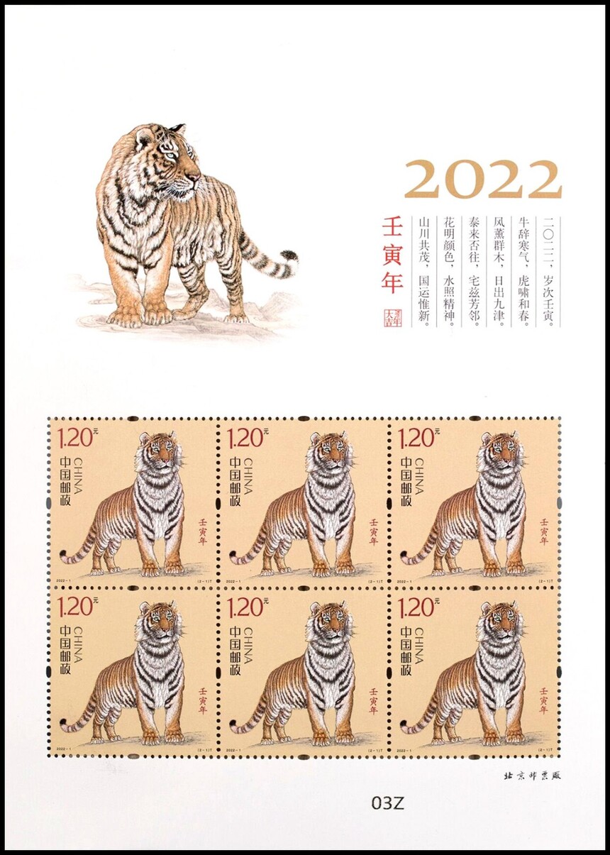 中国邮政定于2022年1月5日发行《壬寅年》特种邮票1套2枚,小本票1本。详情如下: