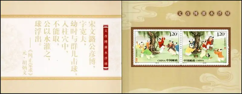 中国邮政定于2010年6月1日发行《文彦博灌水浮球》特种邮票1套2枚,小本票1本。详情如下: