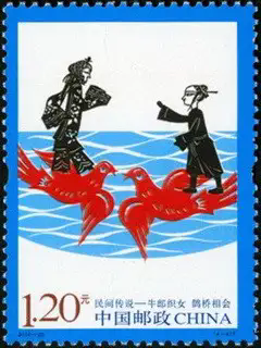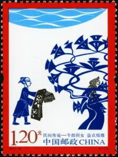中国邮政定于2010年8月16日发行《民间传说-牛郎织女》特种邮票1套4枚,小本票1本。详情如下: