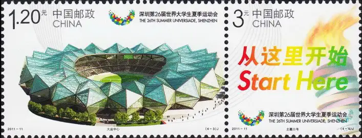 中国邮政定于2011年5月4日发行《深圳第26届世界大学生夏季运动会》纪念邮票1套4枚。详情如下: