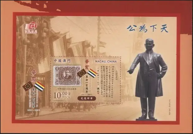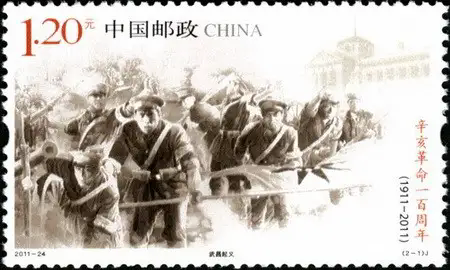中国邮政定于2011年10月10日发行《辛亥革命一百周年》纪念邮票1套2枚,小型张1枚。详情如下: