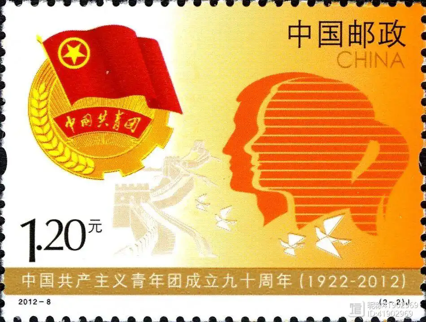 中国邮政2012年5月4日发行《中国共产主义青年团成立九十周年》纪念邮票1套2枚。