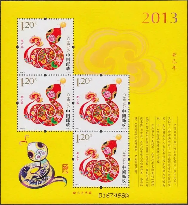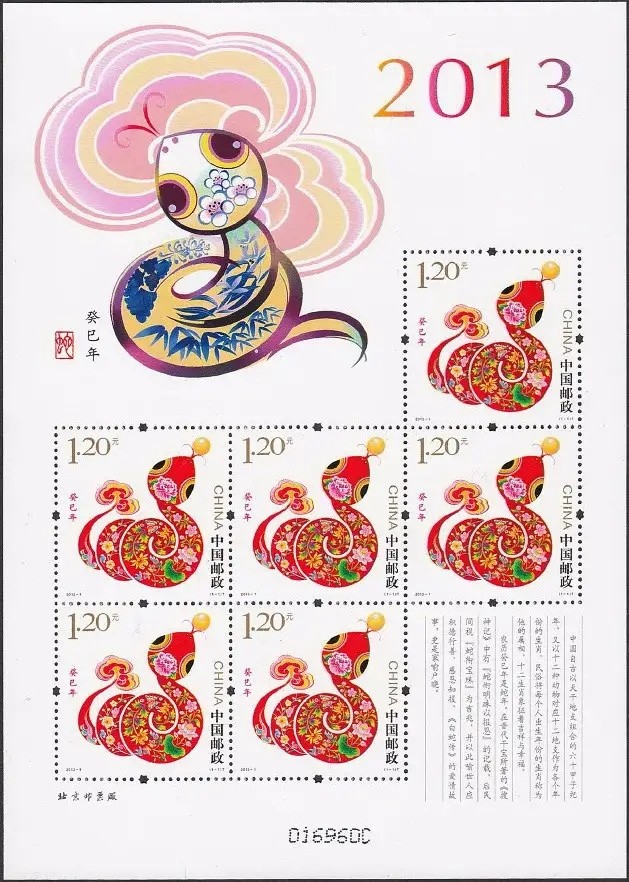 中国邮政2013年1月5日发行《癸巳年》特种邮票1套1枚,小本票1本。
