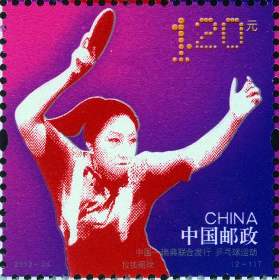 中国邮政定于2013年9月27日发行《乒乓球运动》特种邮票1套2枚(与瑞典联合发行)。详情如下: