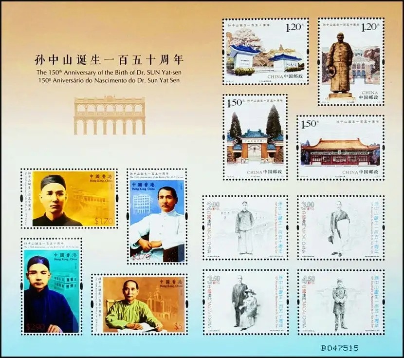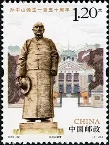 中国邮政定于2016年11月12日发行《孙中山诞生一百五十周年》纪念邮票1套4枚。详情如下: