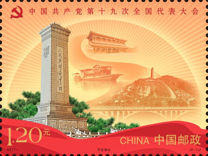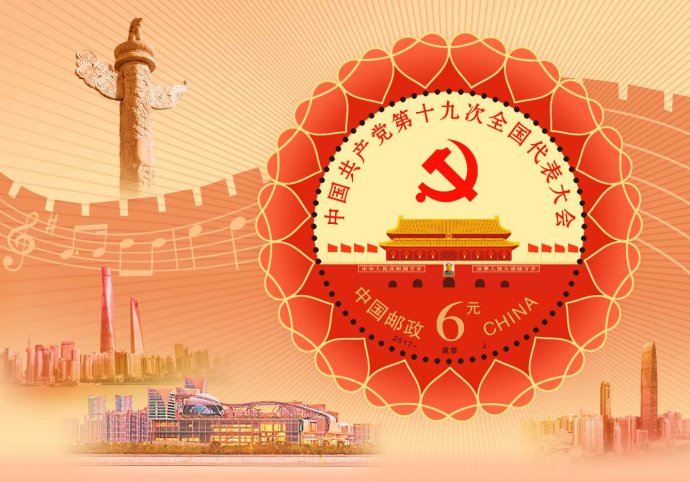 中国邮政定于2017年10月18日发行《中国共产党第十九次全国代表大会》纪念邮票1套2枚,小型张1枚。详情如下: