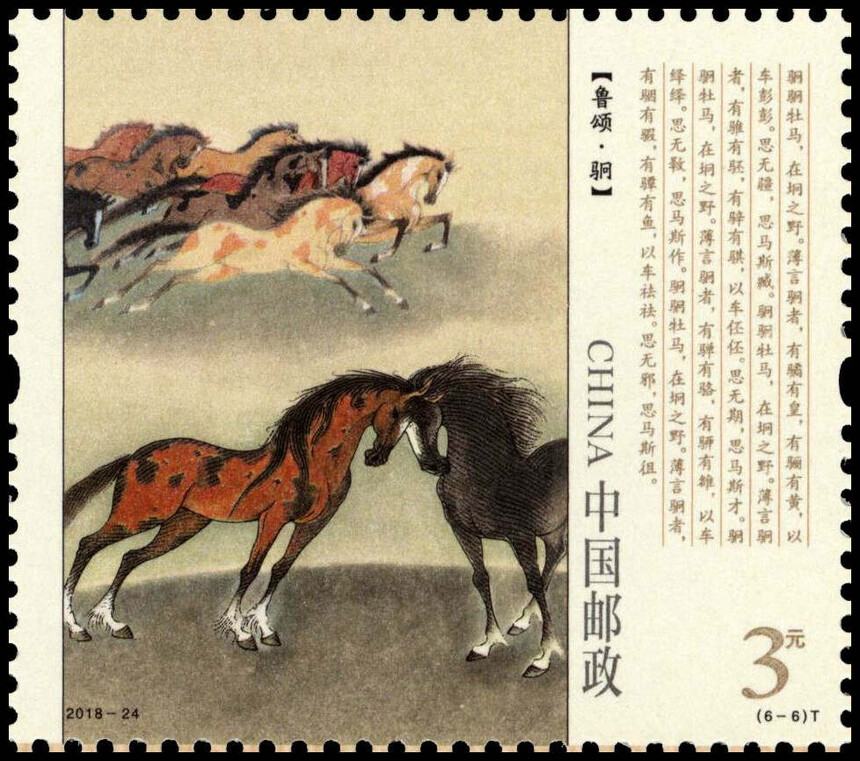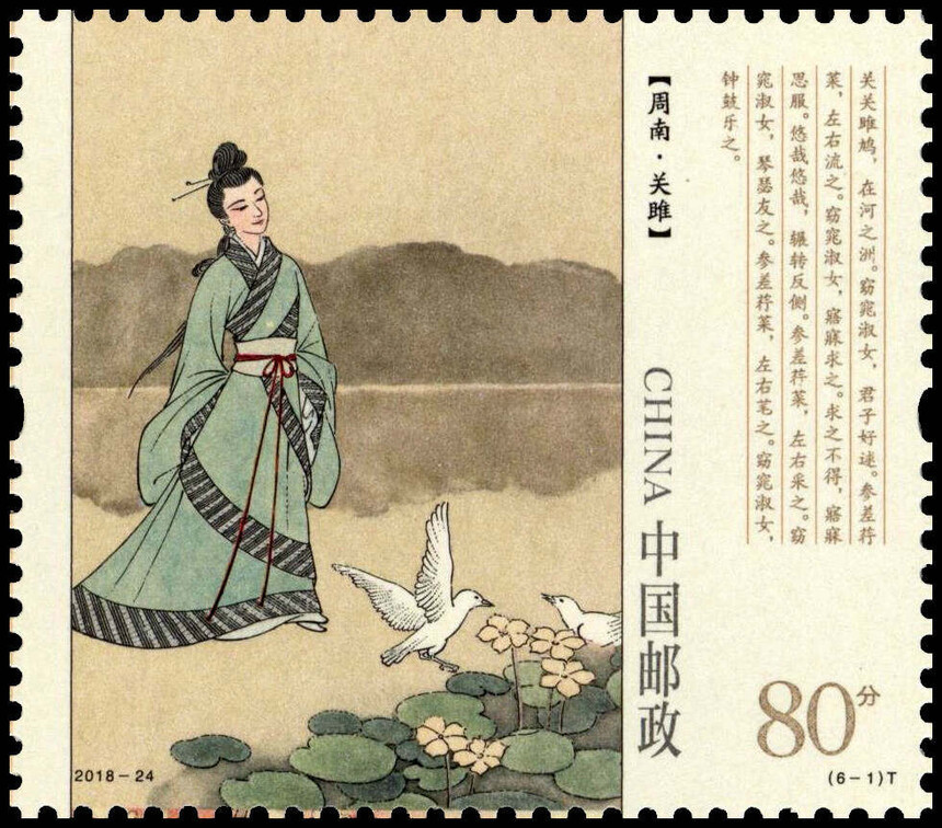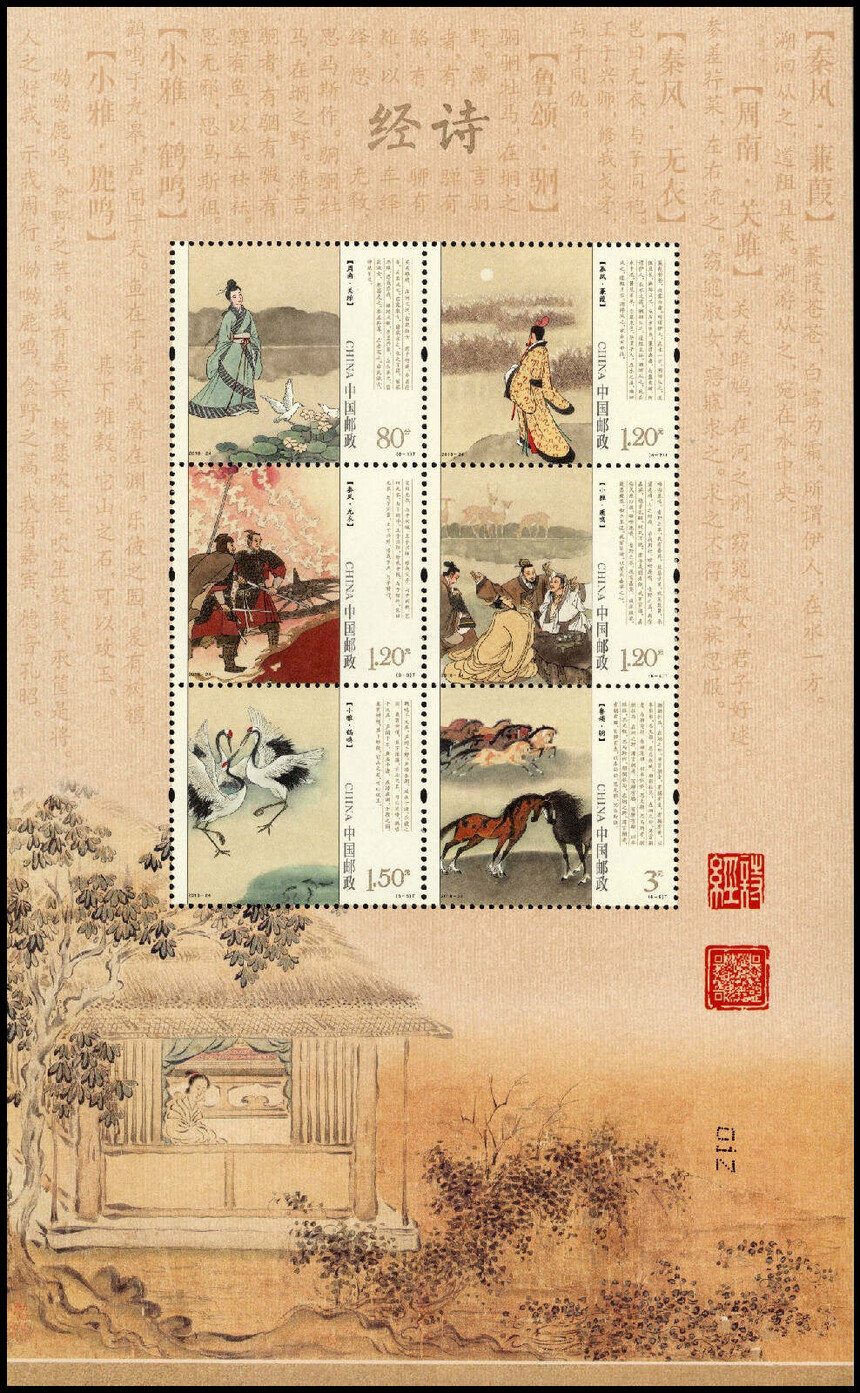 中国邮政定于2018年9月8日发行《诗经》特种邮票1套6枚。详情如下:
