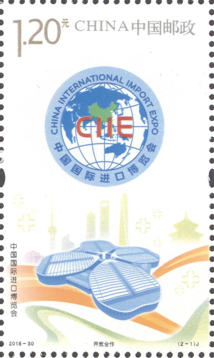 中国邮政定于2018年11月5日发行《中国国际进口博览会》纪念邮票1套2枚。详情如下: