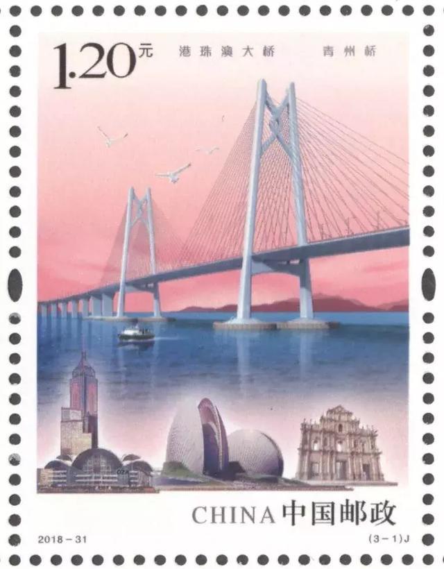 中国邮政定于2018年10月30日发行《港珠澳大桥》纪念邮票1套3枚。详情如下: