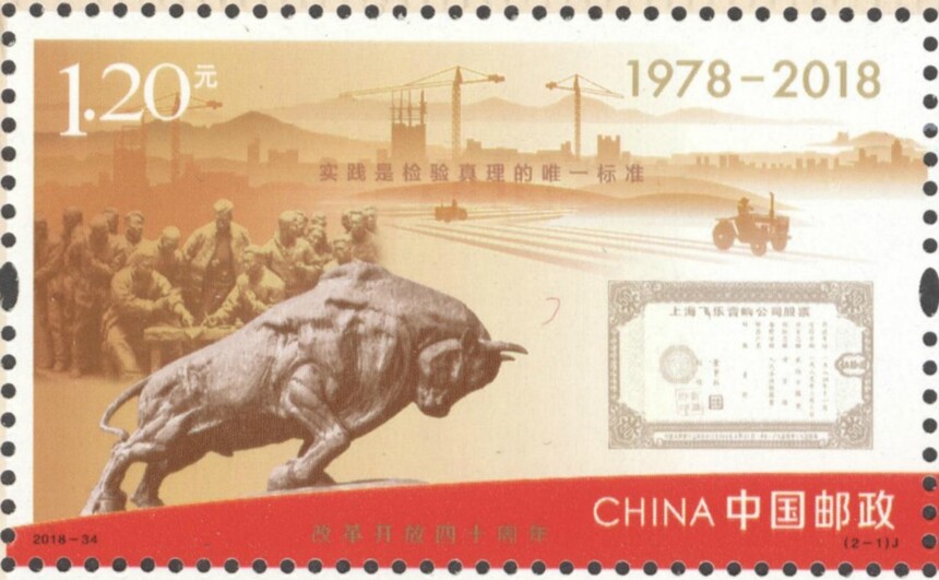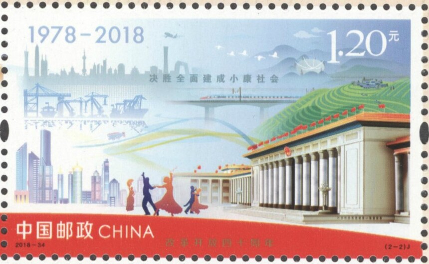 中国邮政定于2018年12月18日发行《改革开放四十周年》纪念邮票1套2枚,小型张1枚。详情如下: