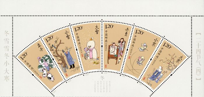 中国邮政定于2019年11月8日发行《二十四节气(四)》特种邮票1套6枚(含特殊版式小全张)。详情如下:
