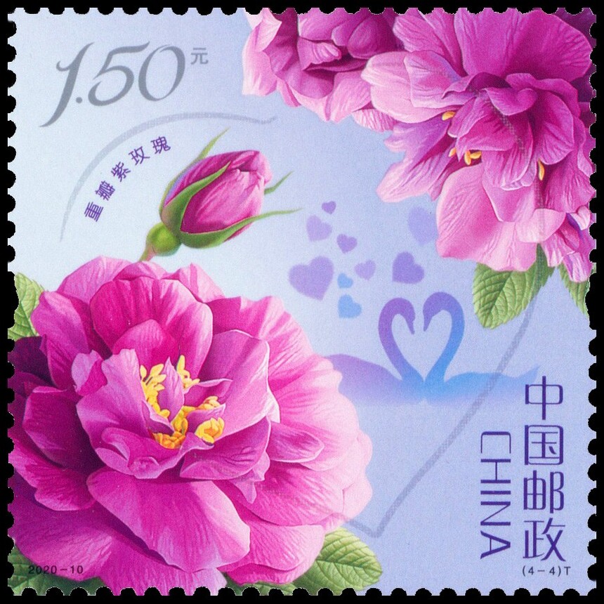 中国邮政定于2020年5月20日发行《玫瑰》特种邮票1套4枚。详情如下: