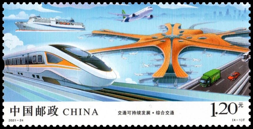 中国邮政定于2021年10月15日发行《交通可持续发展》特种邮票1套4枚。详情如下: