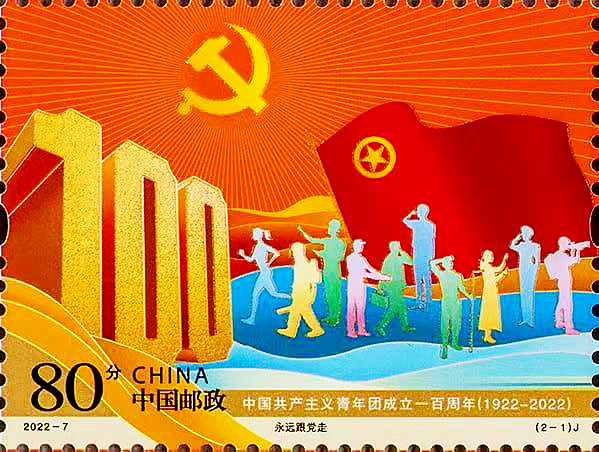 2022-7《中国共产主义青年团成立一百周年》纪念邮票1套2枚