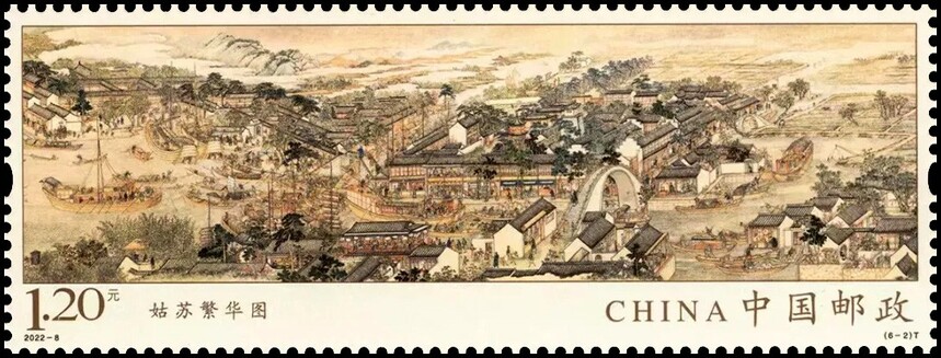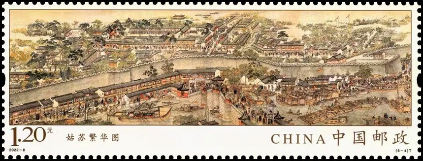 中国邮政定于2022年5月18日发行《姑苏繁华图》特种邮票1套6枚。详情如下: