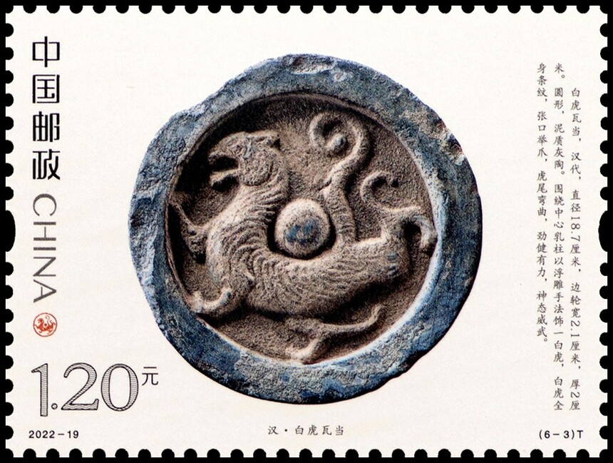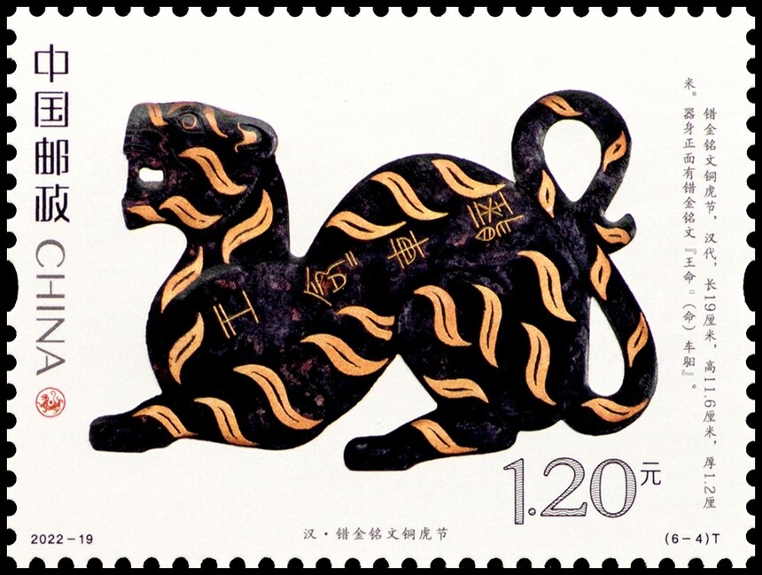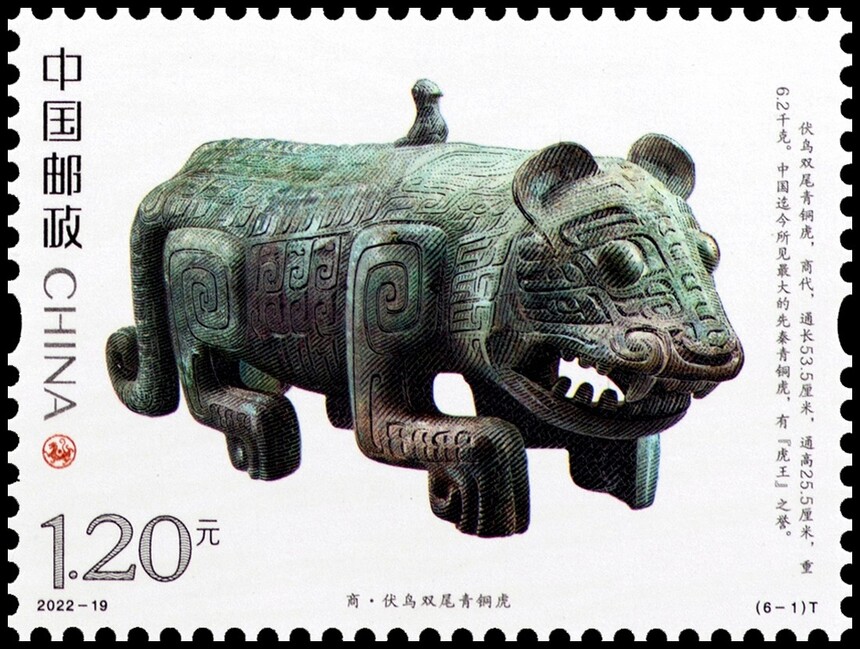 中国邮政定于2022年9月5日发行《虎(文物)》特种邮票1套6枚。详情如下: