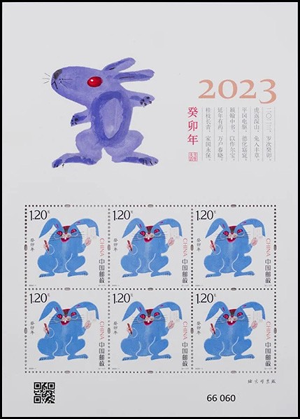 中国邮政定于2023年1月5日发行《癸卯年》特种邮票1套2枚,小本票1本。详情如下: