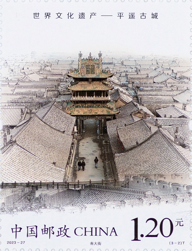 2023-27《世界文化遗产——平遥古城》特种邮票1套3枚,小全张1枚
