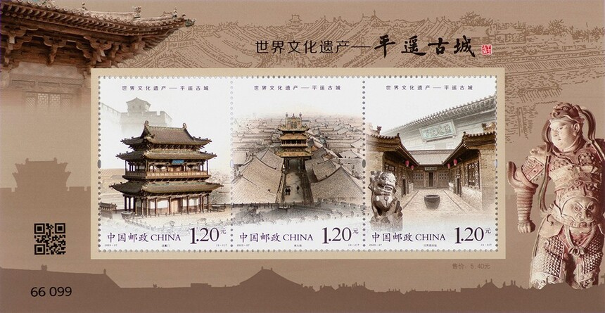 中国邮政定于2023年12月3日发行《世界文化遗产——平遥古城》特种邮票1套3枚,小全张1枚。详情如下: