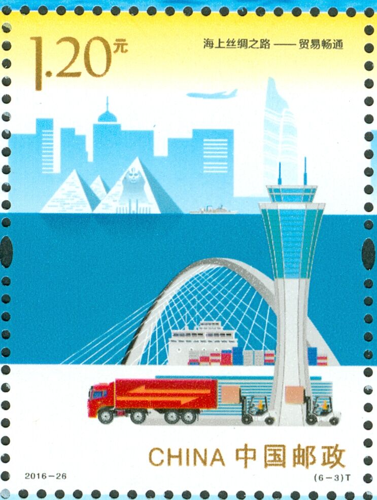 中国邮政定于2016年9月10日发行《海上丝绸之路》特种邮票1套6枚,小全张1枚。详情如下: