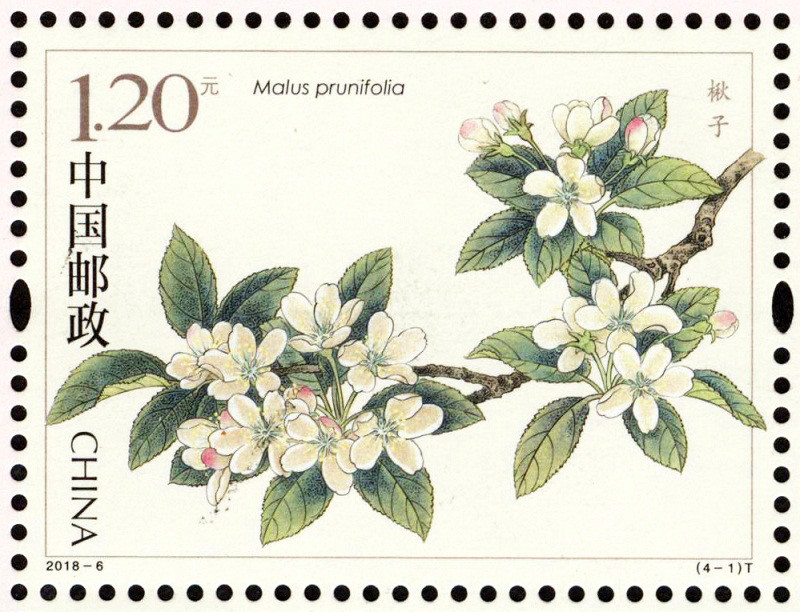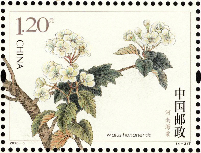 中国邮政定于2018年3月25日发行《海棠花》特种邮票1套4枚。详情如下: